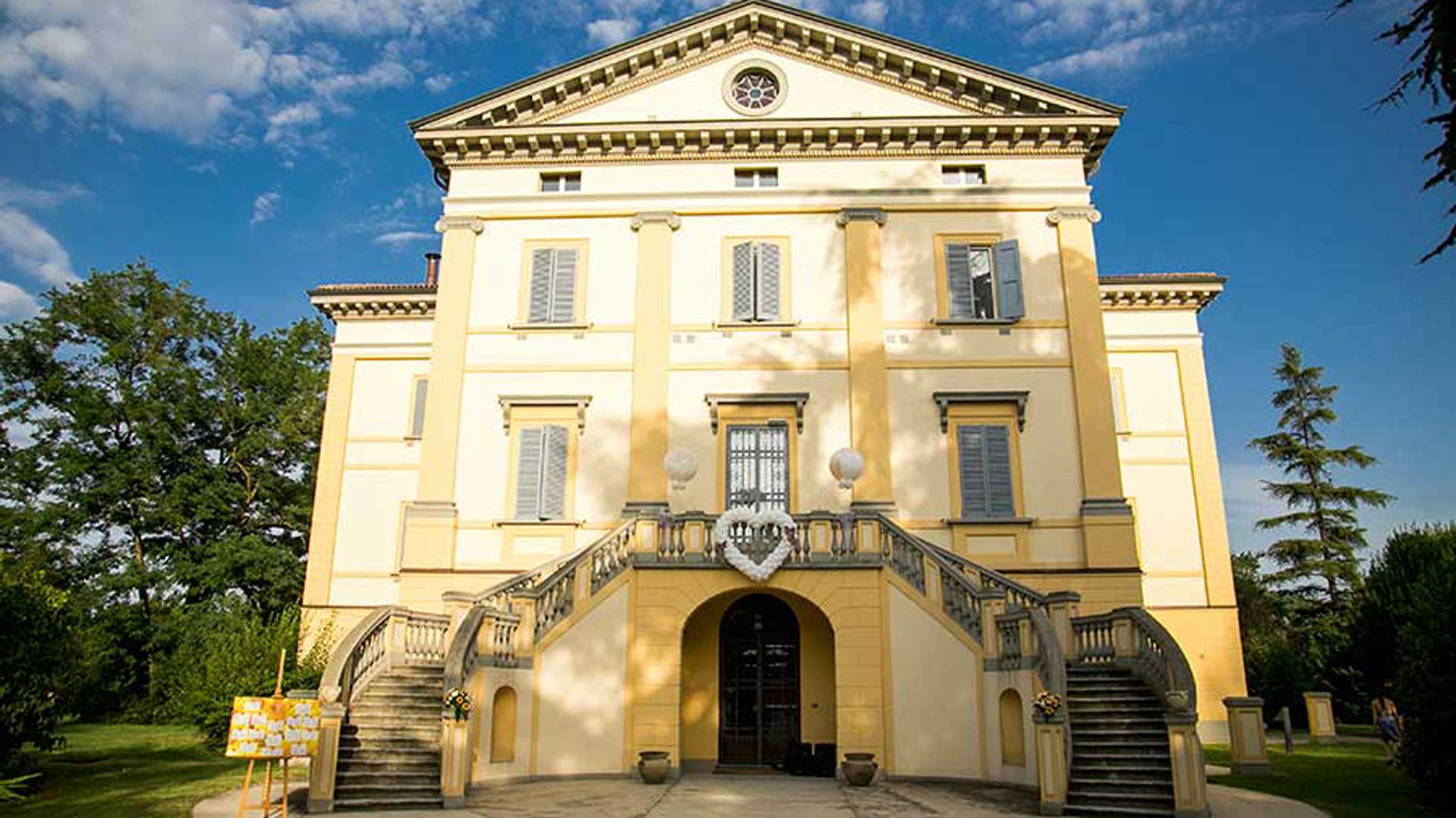 Questa villa storica presenta un’elegante facciata in stile neoclassico, circondata da un parco secolare. Gli interni sono decorati con affreschi e arredi d’epoca, creando un’atmosfera raffinata e romantica. La villa è dotata di sale ampie e luminose, ideali per eventi di prestigio.